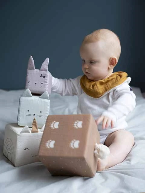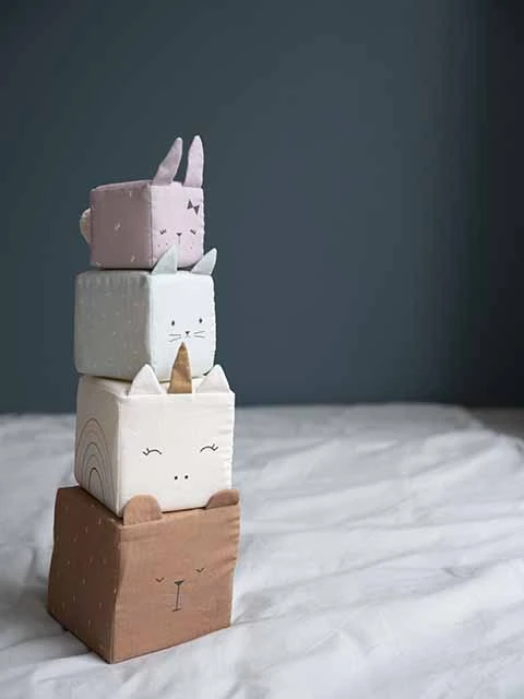 The tower of blocks is made from the softest organic cotton,