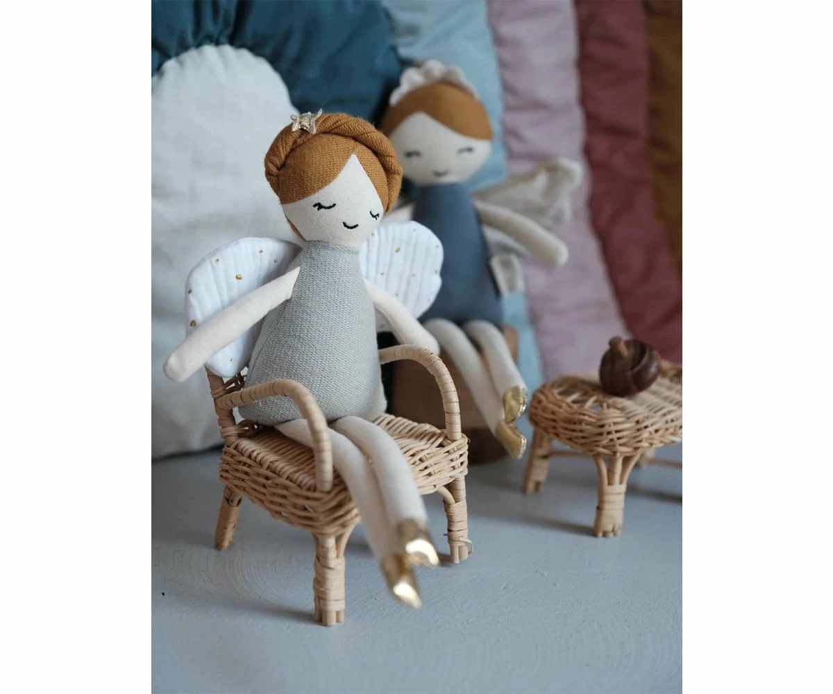 Bamba Fatina dei Denti con borsettina Dettagli: composizione: 100% cotone organico certificato imbottitura: fibra di mais prodotto in Sri Lanka misura pupazzino: 28cm disegnata in Danimarca