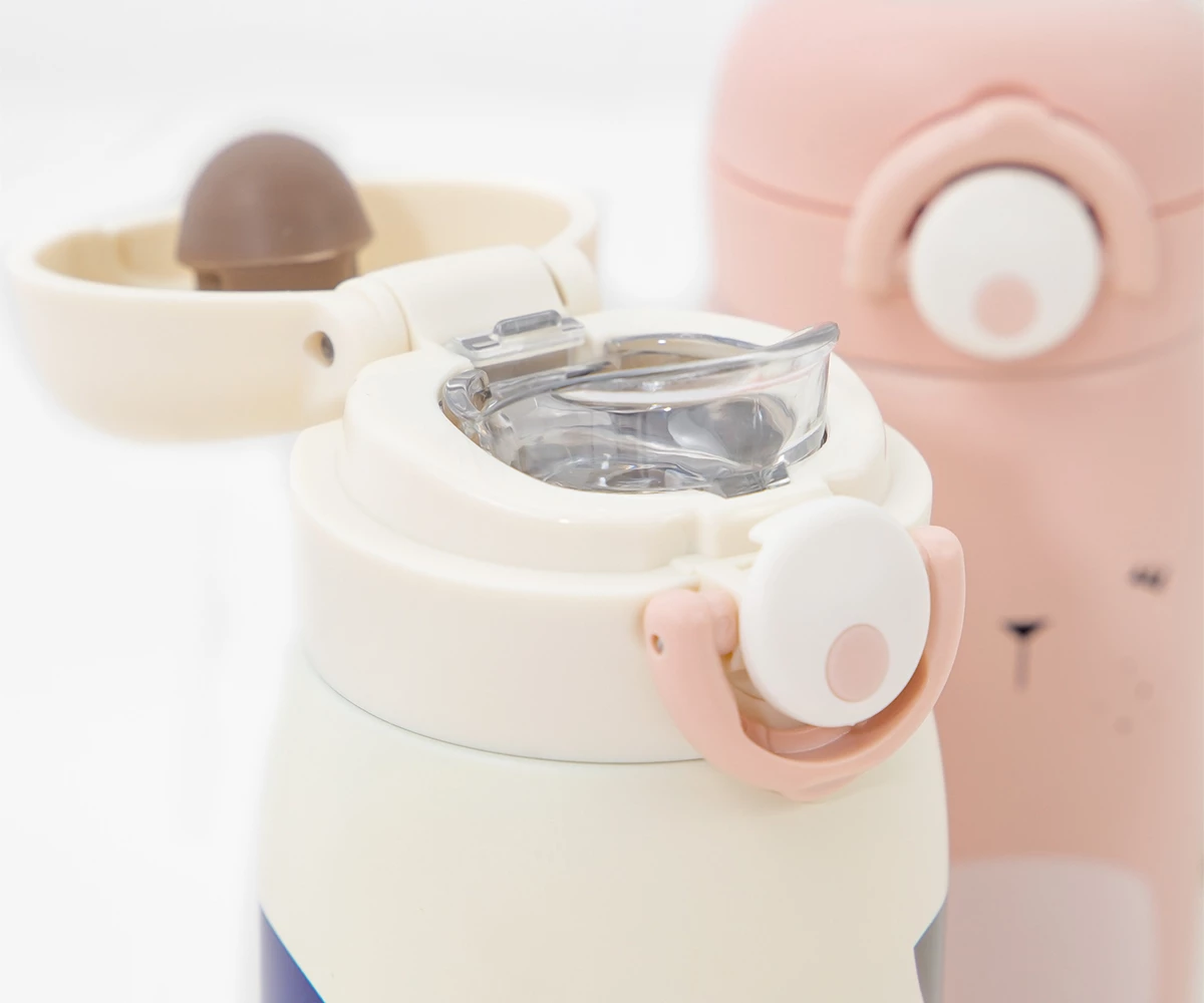 La botella de agua tiene una capacidad de 320 ml y está fabricada con acero inoxidable de grado 18/8 y silicona PP sin BPA.