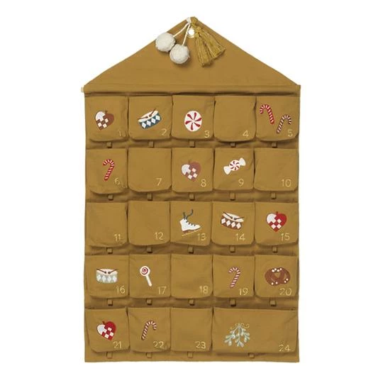 Composition : 100% coton biologique-Pour patienter jusqu’à Noel, Fabelab à créé un calendrier mural brodé. Décoré de jolis petits pompons et de détails magnifiques, le calendrier mural de cette année est mis à jour avec un look magique et ludique. Ce calendrier a 24 poches avec de petites boucles attachées pour le remplir de surprises qui rendent chaque jour spécial, reste plus qu’a attendre…