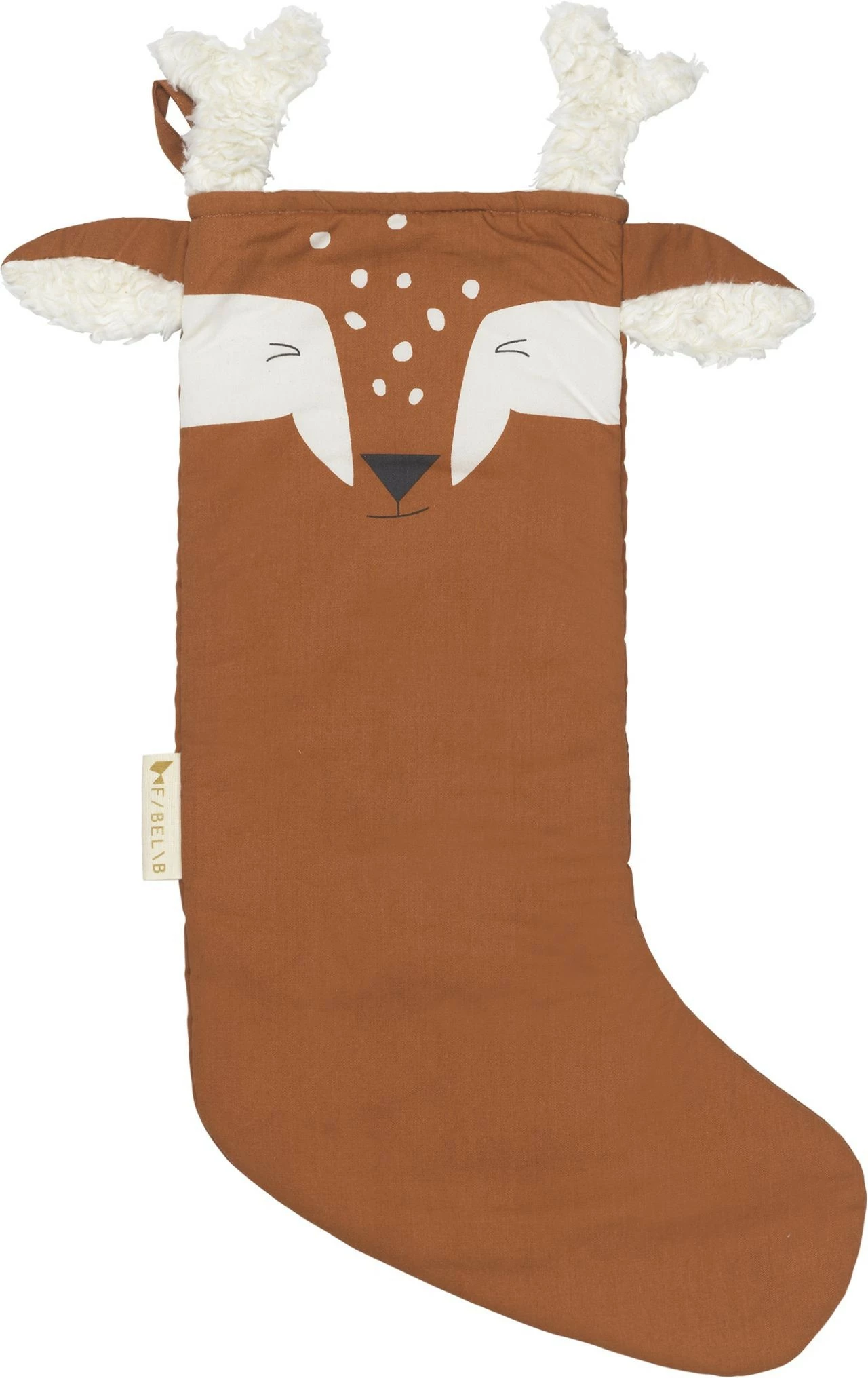 Spoil someone at Christmas with this gorgeous cinnamon and off-white deer stocking from Danish designers Fabelab. With his sleepy eyes and furry little antlers, stockings don’t get much cuter. He comes with a simple loop for easy hanging and he can come out year after year.