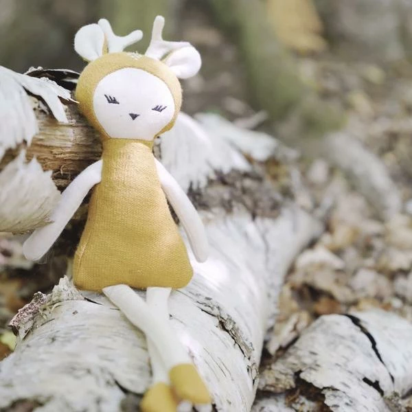 The Fawn Dream Friend is a quiet creature living in the Enchanted Forest. He will stay by your side to give you the courage to follow your own path and be true to yourself. 24 cm 100% Organic cotton Corn Filling