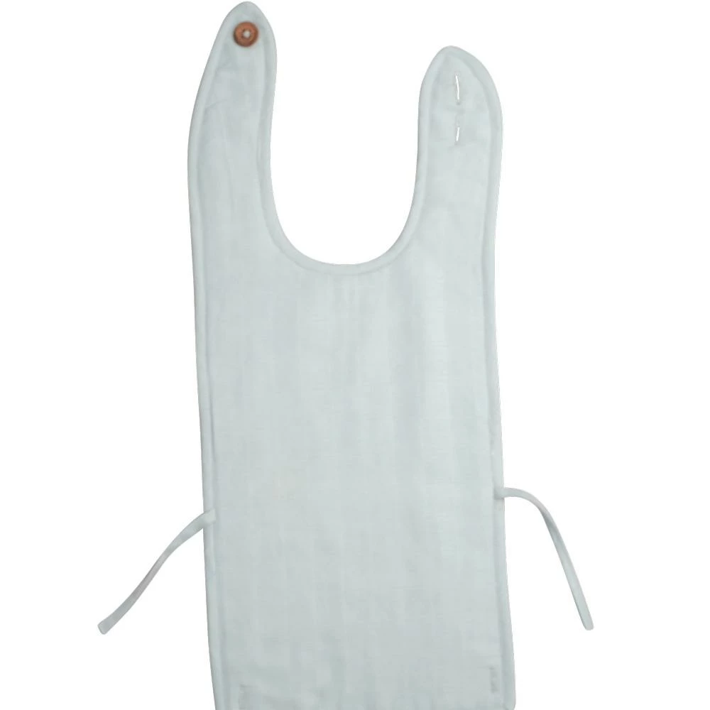 This feeding bib is a perfect item for your baby who just started to have baby food. The bib is fastened behind the neck with an adjustable fitting. And the large scoop at the base captures wayward pieces of food and spills. Organic muslin and terry cotton material would allow wiping baby’s face at any time during the meal.
