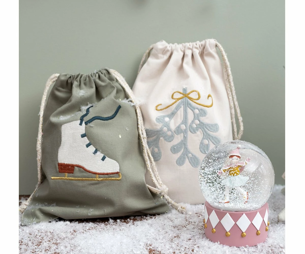 Palla di Neve Natale Pattinatrice Rosa Dettagli: Materiale: 40% poliresina, acqua pura e vetro Misure: diam. 12 x h. 13.7cm Disegnata in Danimarca Non è un giocattolo! se cade si rompe