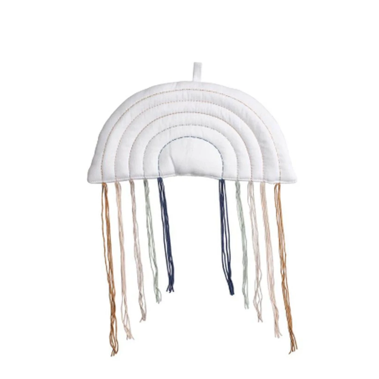 The Rainbow decoration is a cute decoration to hang up in your little ones room, it features multi-coloured dangling strings and a loop at the top.