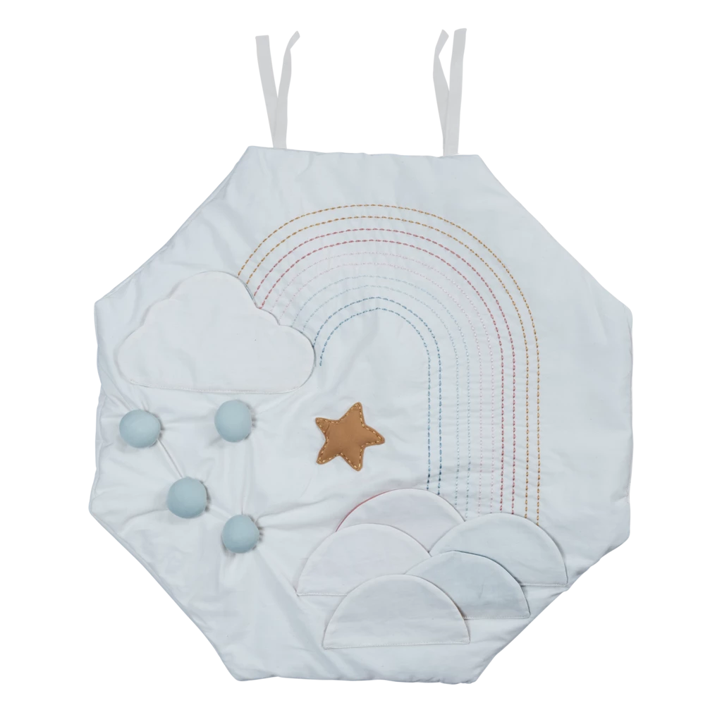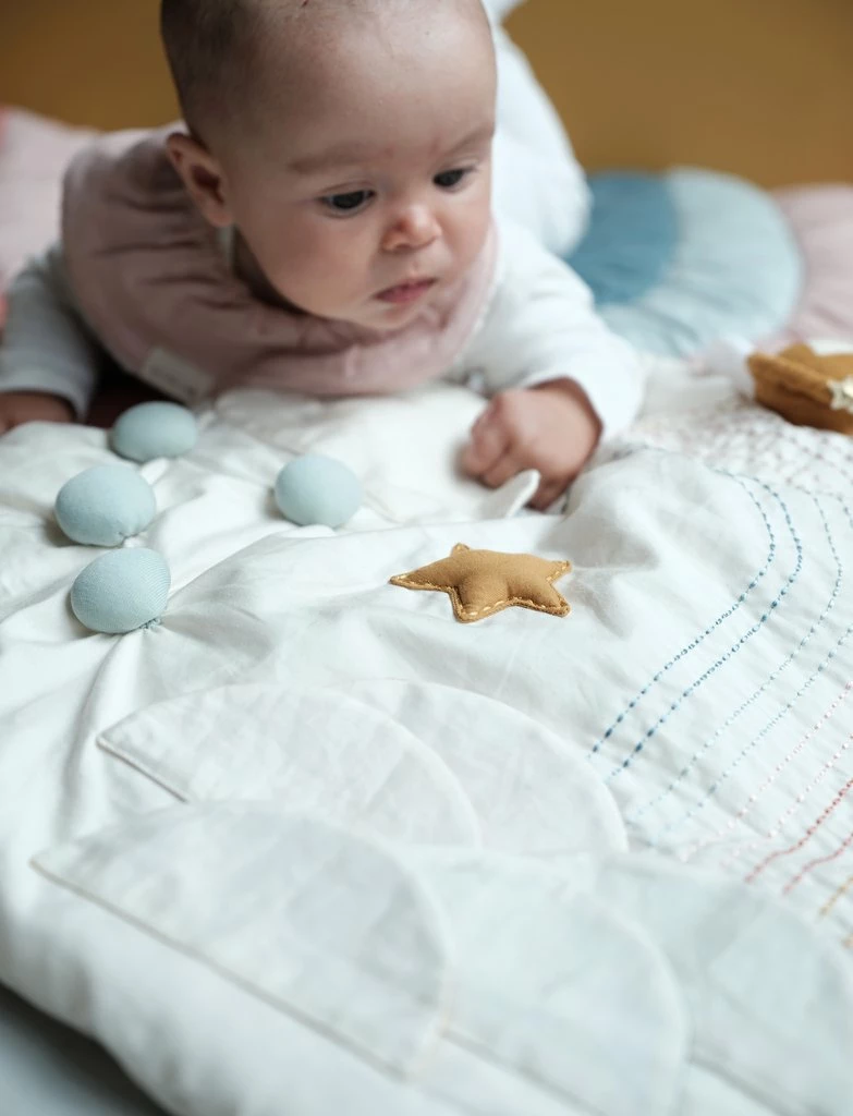 Gently stimulate baby’s senses with this soft Activity Blanket from Danish brand FABELAB. Inspired by colourful rainbow, this blanket with fun bubbles to grab at and crackling paper to squeeze would entertain babies while they lie on the blanket or travel somewhere with it. This Activity Blanket is easy to take along with you, and baby will love to lie on her tummy and explore at his/her own pace.