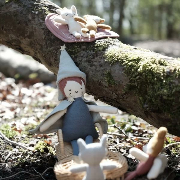 Little Wizard flies around in the Rainbow Valley and is eager to help your little one to find their inner magic. He’s the perfect doll for your little magician and knows how to turn stones into shiny gold or water into bubbly elixir! 28 cm 100% Organic cotton Corn filling
